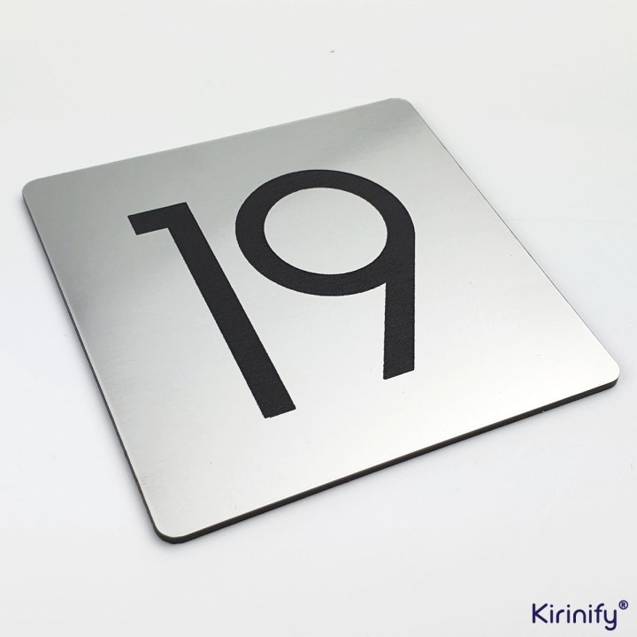 Gegraveerd RVS Look huisnummerbord met zwart huisnummer 7 x 7 cm