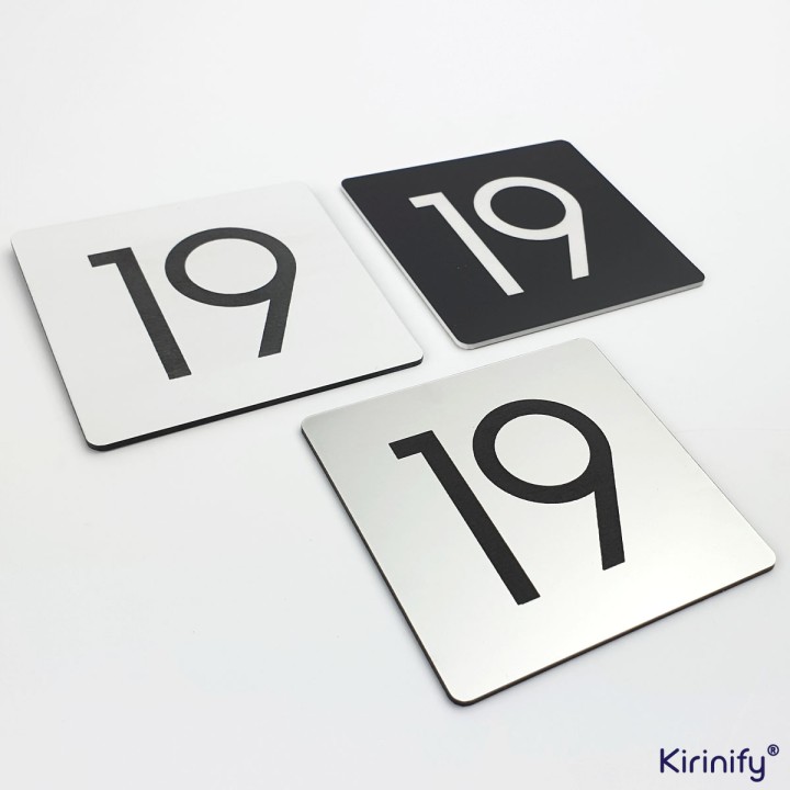 Gegraveerd wit huisnummerbord met zwart huisnummer 7 x 7 cm
