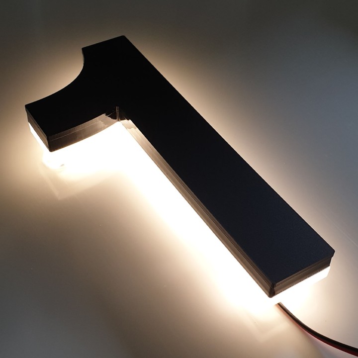 Mat zwart huisnummer met verlichting 20 cm hoog - Nummer 1