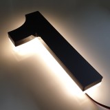 Prachtig mat zwart huisnummer met warm witte gloed verlichting aan de achterzijde zodat het huisnummer overdag en in de nacht uitstekend leesbaar is.