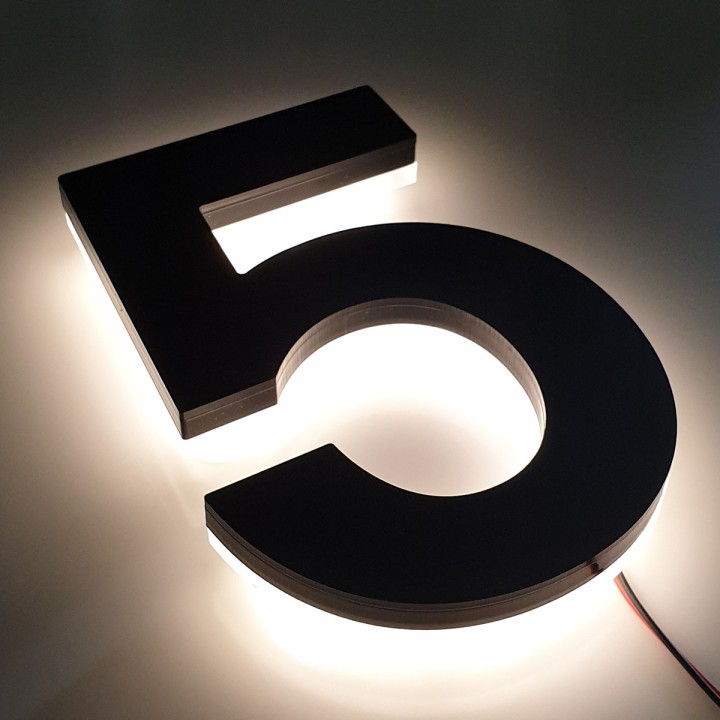 Mat zwart huisnummer met verlichting 20 cm hoog - Nummer 5