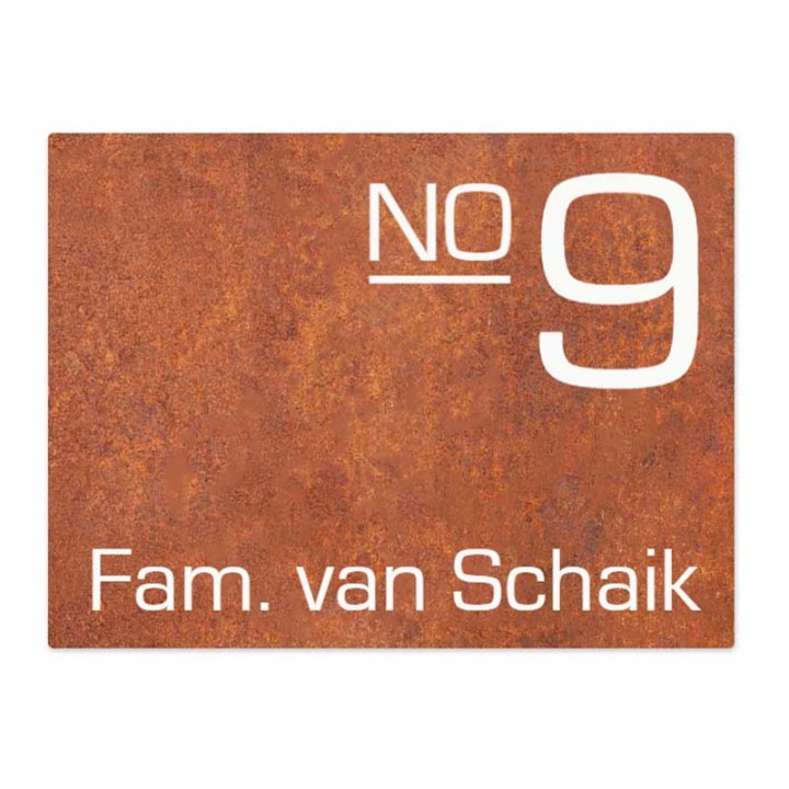 Naambordje voordeur Cortenstaal lasergesneden - 20 x 15 cm