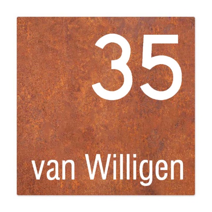 Naambordje voordeur Cortenstaal lasergesneden - 20 x 20 cm