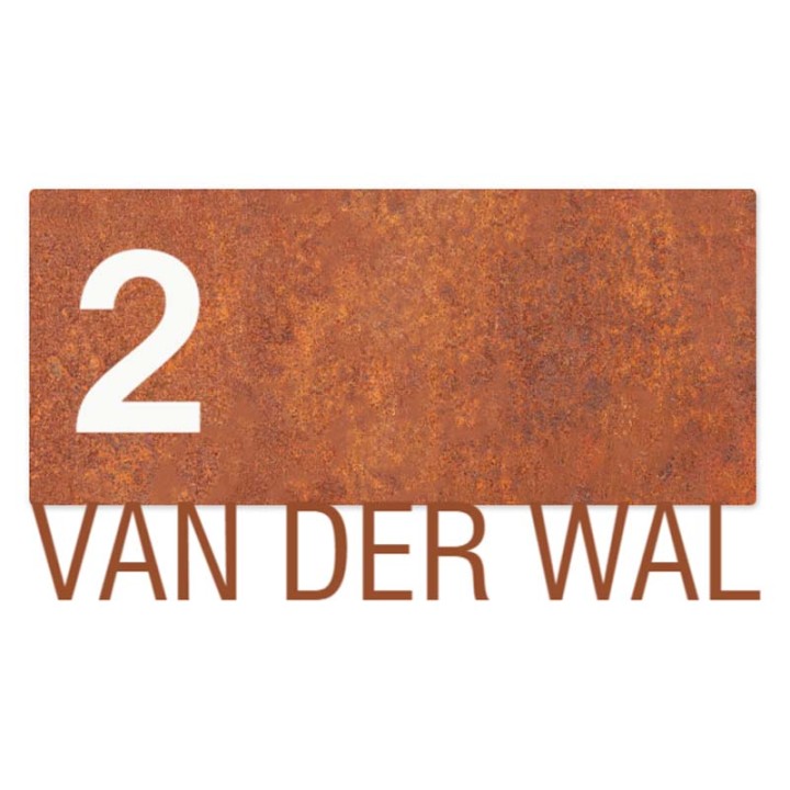 Naambordje voordeur Cortenstaal met huisnummer en naam - 30 x 20 cm