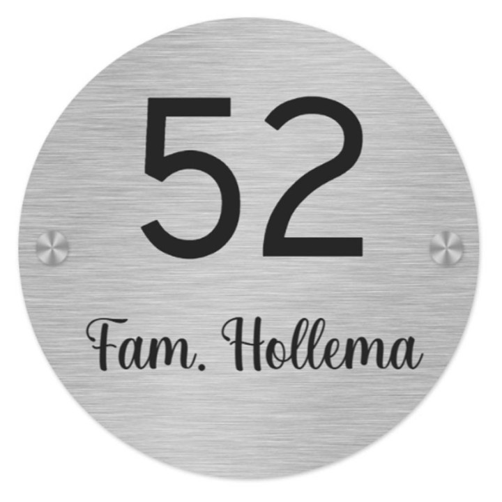 Naambordje voordeur RVS gegraveerd met afstandhouders - Rond 20 cm