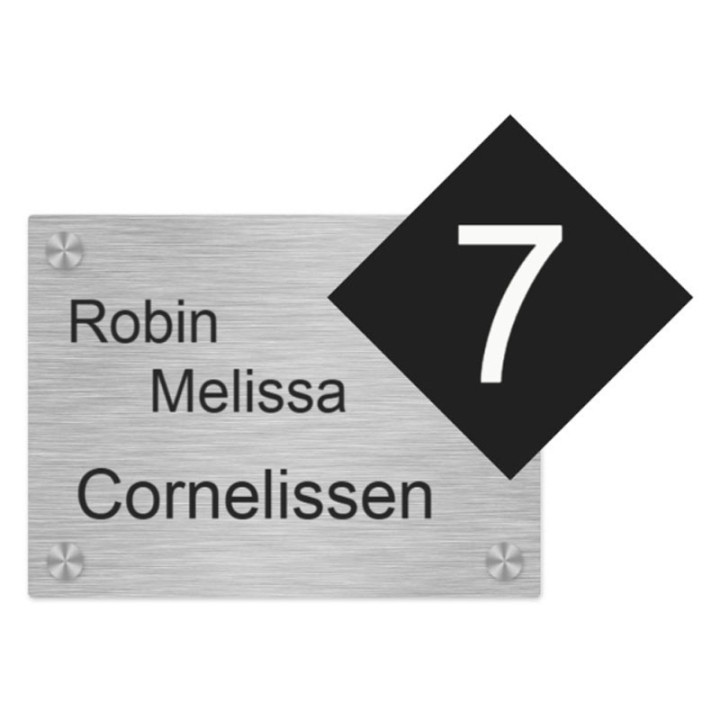 Naambordje voordeur RVS met huisnummer in ruit - 26 x 19 cm