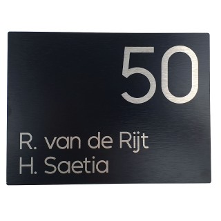 Het bijzondere van dit zwarte naambordje is dat de onderliggende RVS Look laag naar voren komt en het een moderne uitstraling geeft.
