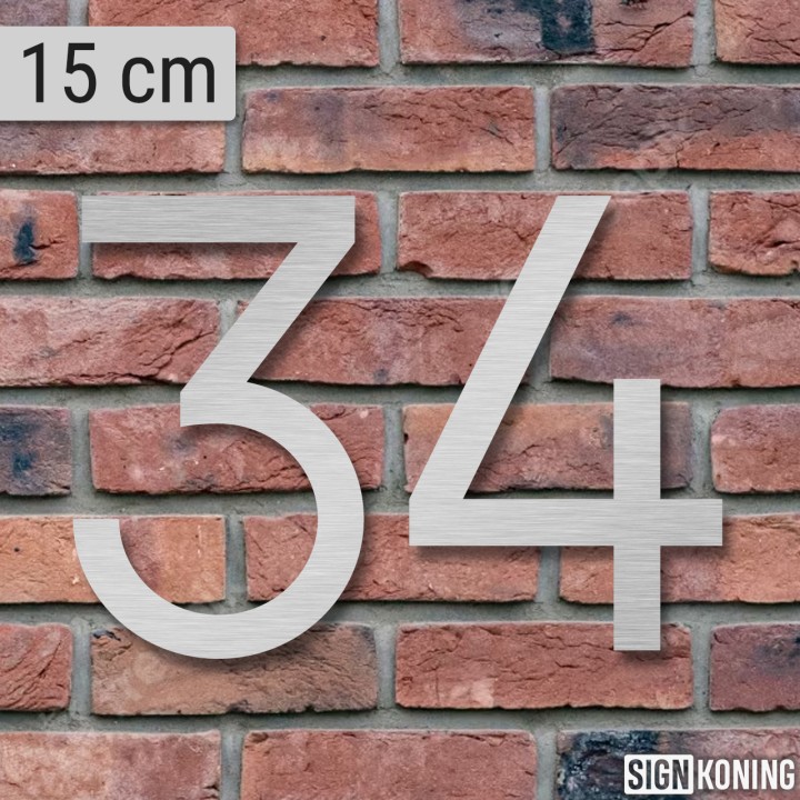 Een klein RVS huisnummer met een hoogte van 15 centimeter. Dit huisnummer is gemaakt van geborsteld RVS en voorzien van een blinde bevestiging. Voor het monteren van dit RVS huisnummer moeten er enkele gaten worden geboord.