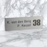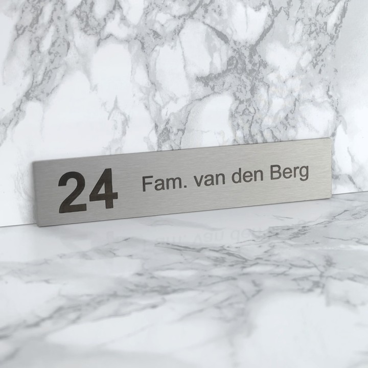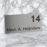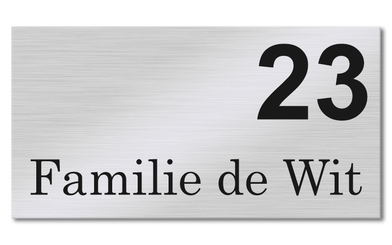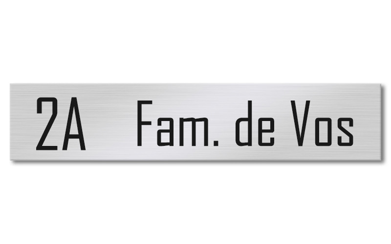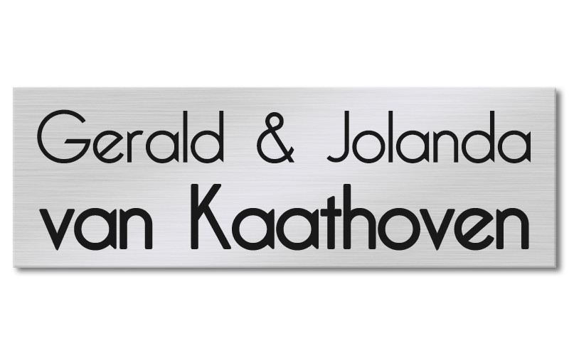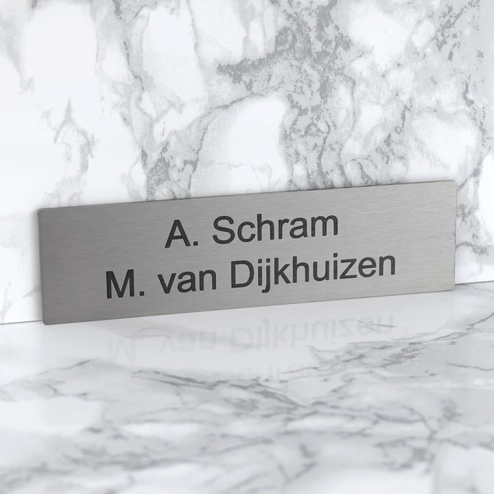 Dit zelfklevend naamplaatje is gemaakt van echt geborsteld RVS en voorzien van een zwarte gravering. Ontwerp dit goedkope RVS naambordje makkelijk via onze website.