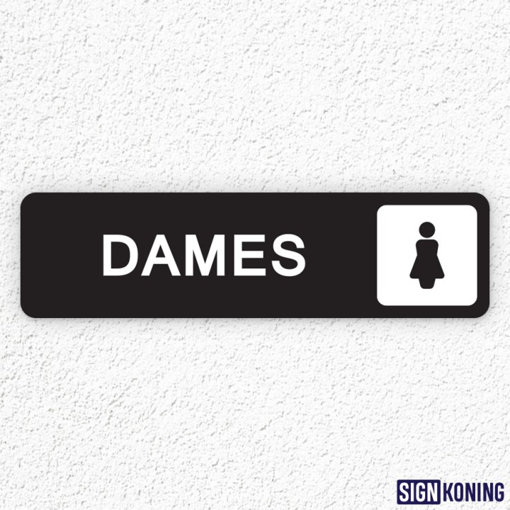 Zelfklevend WC Bordje 15 x 4 cm - Toilet Dames - Zwart