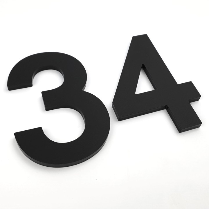 Een zwart huisnummer met een hoogte van 20 centimeter. Dit huisnummer is gemaakt van dik Plexiglas en voorzien van een blinde bevestiging. Voor het monteren van dit zwarte huisnummer moeten er enkele gaten worden geboord.