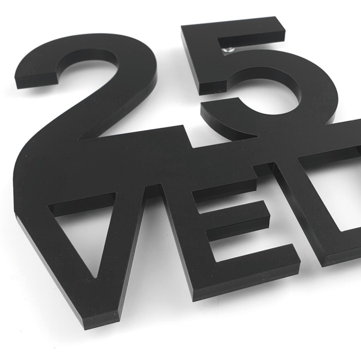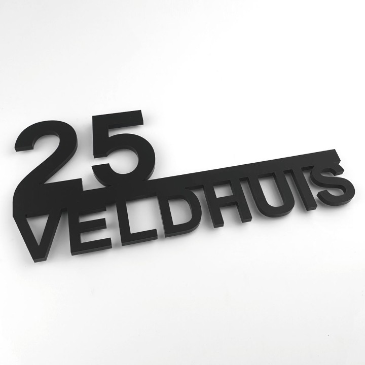 Wij lasersnijden jouw ontwerp uit 8mm mat zwart Plexiglas, waarbij alles aan één stuk zit. Na het ontwerpen kies je de manier van bevestigen: boren (2 of 3 gaatjes), zelfklevend of zonder bevestiging.