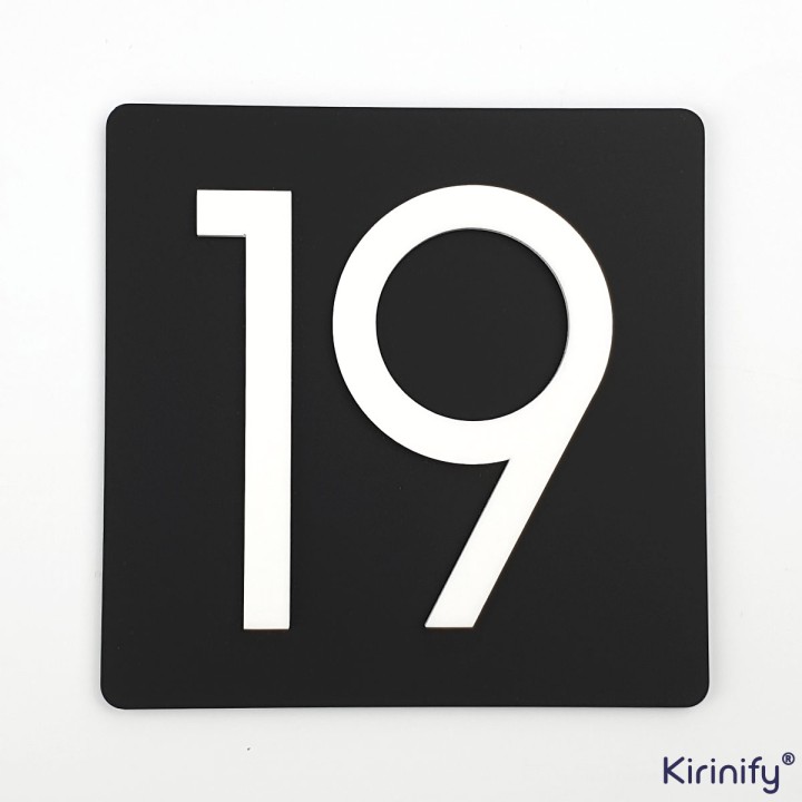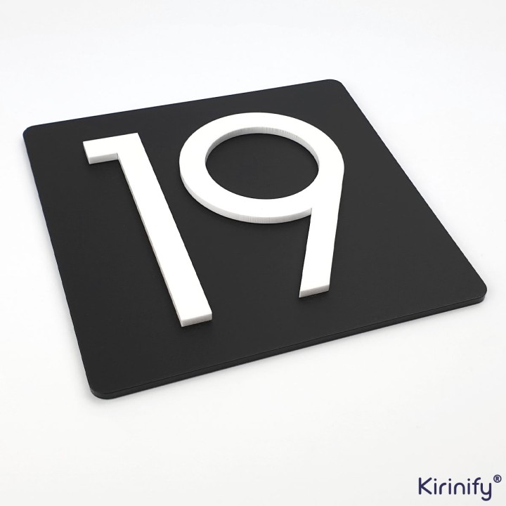 - Mat zwart Plexiglas huisnummerbord met witte cijfers (3D)