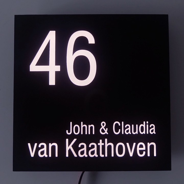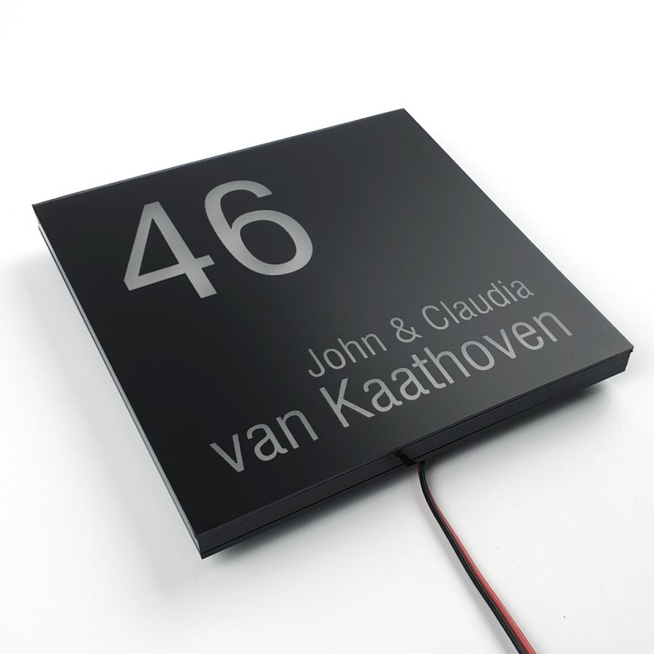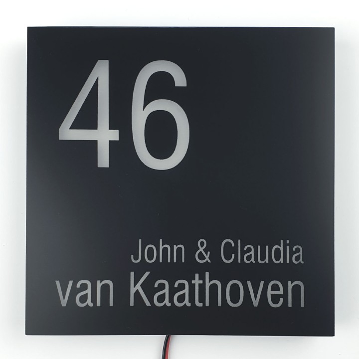 Zwart naambord met verlichting - 15 x 15 cm